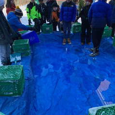 Junior students working together to build an ice rink in our yard